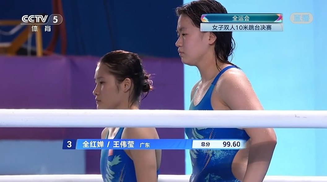 11月2日,在第十五届全运会跳水技俩女子团体比赛中,全红婵搭档王伟莹出战女团双东谈主10米台,3跳富厚发达,以235.86的总成绩名交替一,匡助广东队女团夺金。