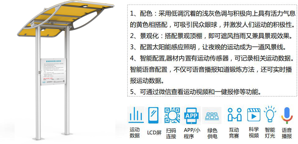 健身路径区域内健身器材使用注意事项说明及热身指导。