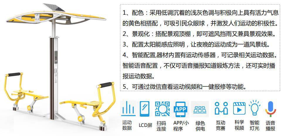KS娱乐官网全民健身产品涵盖健身路径、运动场馆、篮乒气羽排等产品,分为多个系列,先进的制造工艺、严苛的质量检测,确保产品性能优良、品质安全可靠,让运动简单科学。并将全民健身器材(户外路径器材、体育场馆等产品)进行智能化升级和互联,实现全人群覆盖、全场景智能,让运动赞美生活。