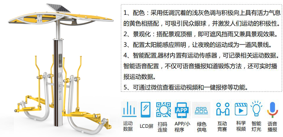 KS娱乐官网全民健身产品涵盖健身路径、运动场馆、篮乒气羽排等产品,分为多个系列,先进的制造工艺、严苛的质量检测,确保产品性能优良、品质安全可靠,让运动简单科学。并将全民健身器材(户外路径器材、体育场馆等产品)进行智能化升级和互联,实现全人群覆盖、全场景智能,让运动赞美生活。