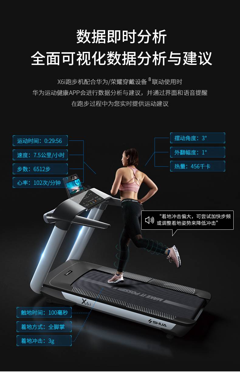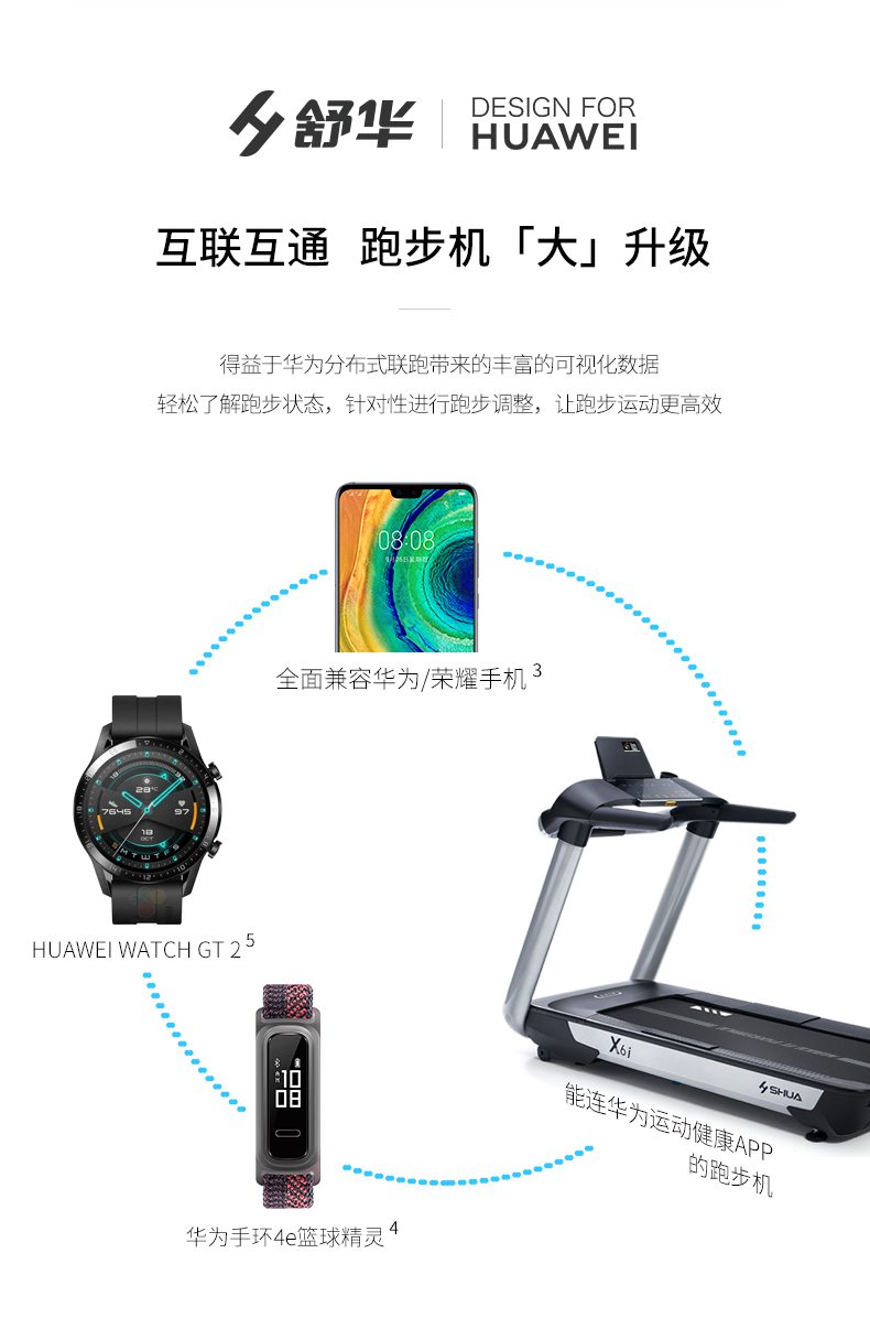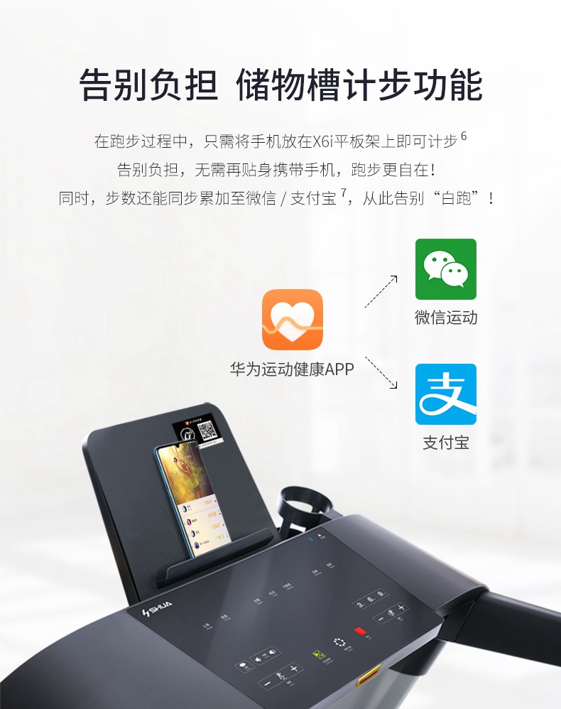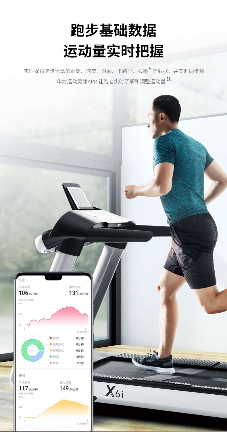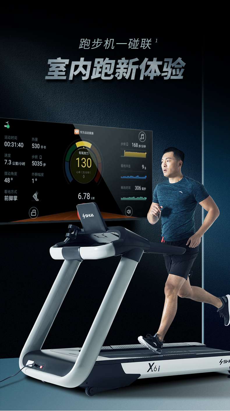 KS娱乐官网跑步机-X6心率跑步机,可根据用户运动是实时心率,跑步机自动调节跑步速度、坡度等进行运动强度的调节,更科学;X6i华为版跑步机,可以通过连接华为运动健康APP,监测多种类型跑步数据。欢迎来电咨询~