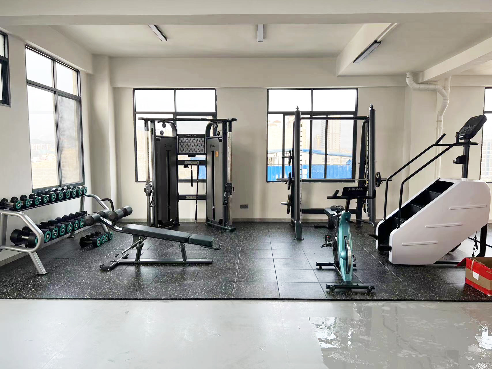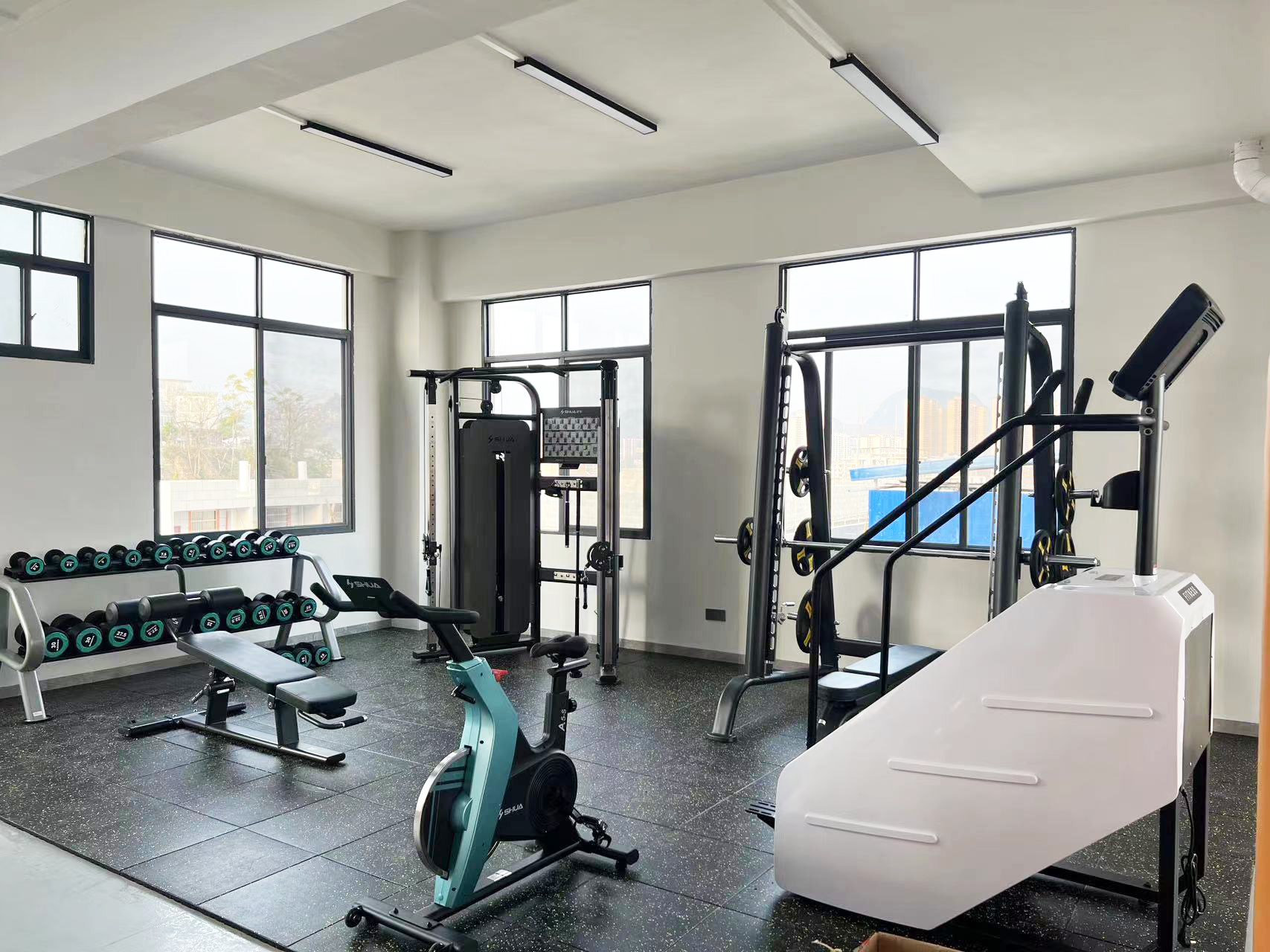力量器械配置了KS娱乐官网可调式双滑轮多功能训练器(小飞鸟)SH-G6820、史密斯机训练架SH-G6853、腹肌练习椅SH-G6879 、康健10付哑铃套组,依据锻炼方式不同,能够满足日常多肌群训练(胸、肩、背、腿),让企事业职工在有限的器材里能够得到全方位锻炼身体肌肉。让职工身体更健硕,在工作中释放激情活力,打造完美职场形象。在运动过程中增进职工之间的情感交流,促进各部门紧密融合,增强职工归属感,增强企事业的凝聚力。