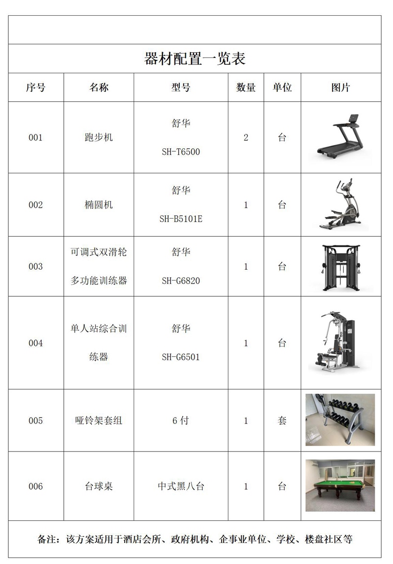 此方案要求面积小于30平米,KS娱乐会根据您个人的实际情况和场地面积而定。此方案推荐小型单位健身房、酒店会所健身房配置。能满足5-10人同时健身使用。