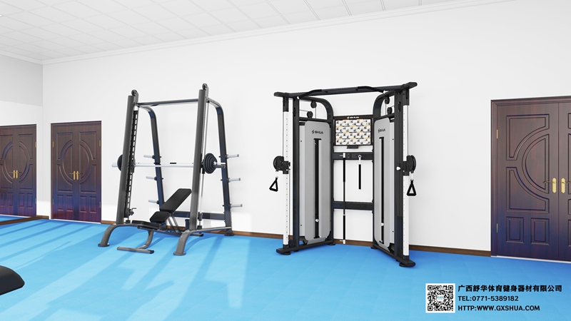 5.KS娱乐官网史密斯机SH-G6853*1台-锻炼股四头肌、股二头肌、肱三头肌;史密斯机采用固定轨迹的杠铃设计,大大降低了训练过程中的安全风险,通过深蹲、卧推、肩推等经典动作,可以针对性地锻炼腿部力量、上肢力量、背部肌群、胸部塑形以及肩部稳定等,从而全面提升身体素质,满足不同的健身需求;