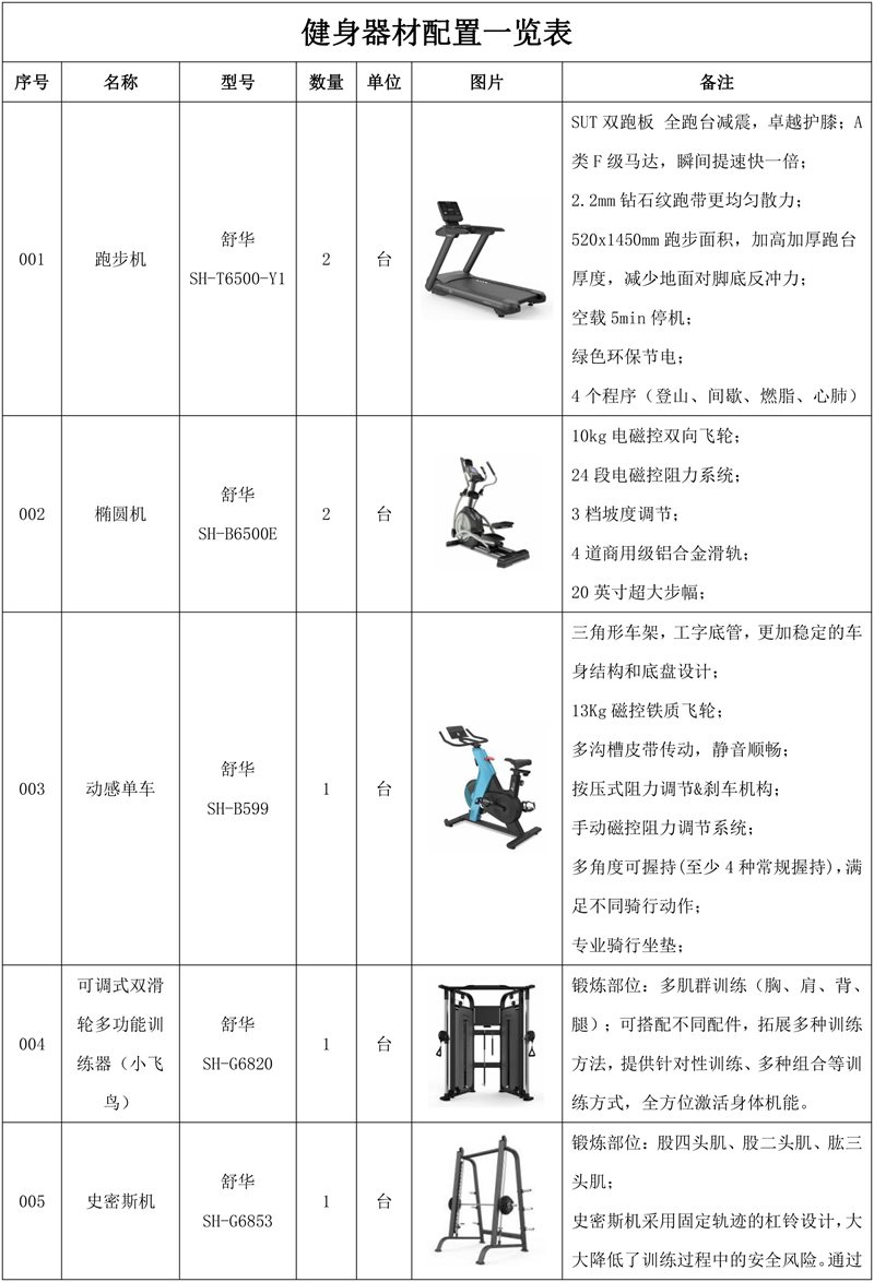 1.KS娱乐官网X5智能跑步机SH-T6500*2台-SUT双跑板 全跑台减震,卓越护膝;A类F级马达,瞬间提速快一倍;2.2mm钻石纹跑带更均匀散力;520x1450mm跑步面积,加高加厚跑台厚度,减少地面对脚底反冲力;空载5min停机;绿色环保节电;4个程序(登山、间歇、燃脂、心肺)。