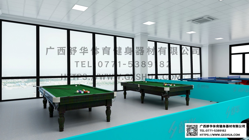 14.台球桌*2张-单位健身房配置台球桌,为员工的业余生活增添了乐趣和选择。与传统的健身器材锻炼相比,台球具有更强的娱乐性和趣味性,能够吸引更多员工参与到健身活动中来,提高健身房的使用率,让员工在工作之余有更多放松身心的方式。