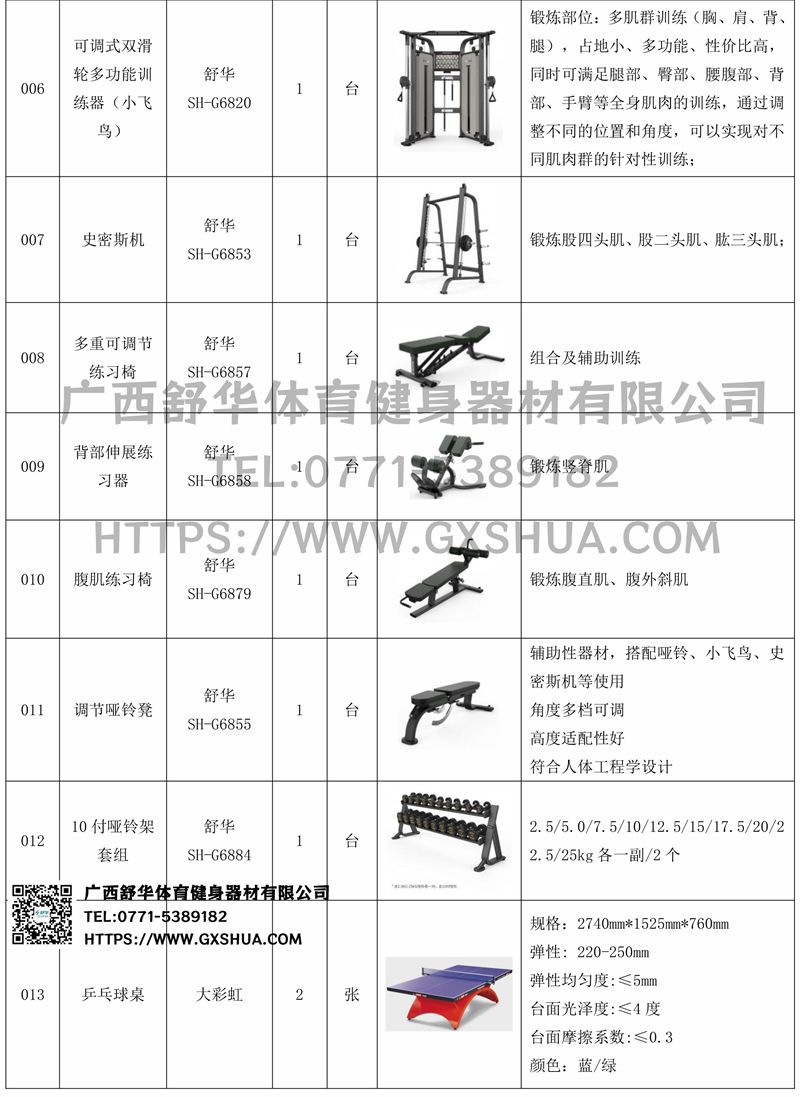 6.KS娱乐官网可调式双滑轮多功能训练器(小飞鸟)SH-G6820*1台-锻炼部位:多肌群训练(胸、肩、背、腿),占地小、多功能、性价比高,同时可满足腿部、臀部、腰腹部、背部、手臂等全身肌肉的训练,通过调整不同的位置和角度,可以实现对不同肌肉群的针对性训练;可搭配不同配件,拓展多种训练方法,提供针对性训练、多种组合等训练方式,全方位激活身体机能。