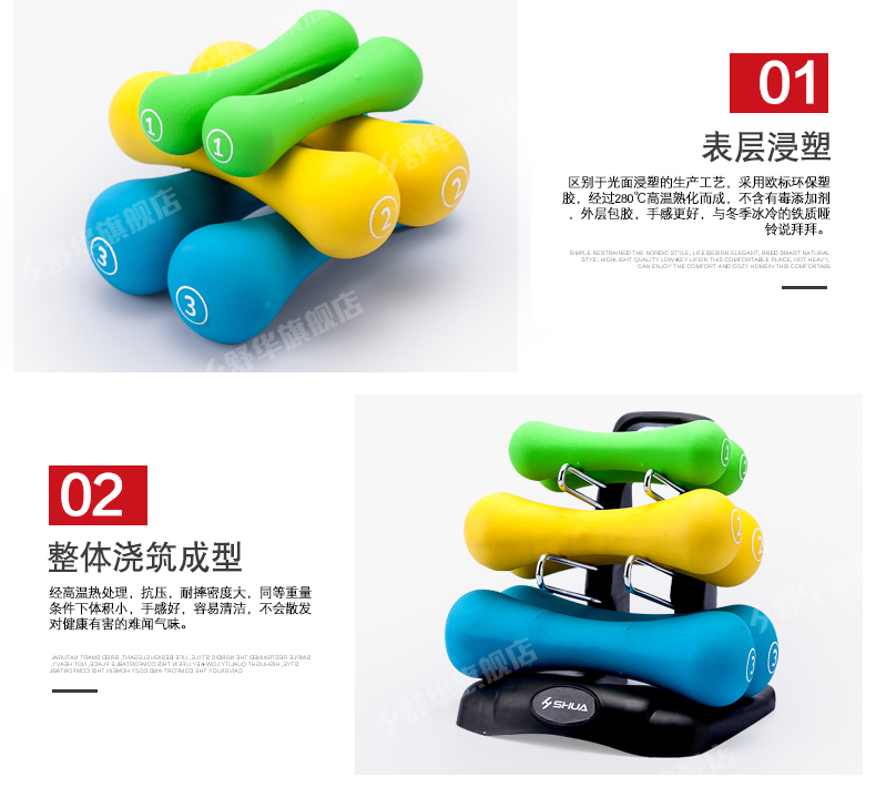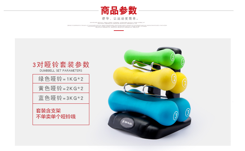KS娱乐官网SHUA浸塑哑铃套装 家用男士女士健身时尚环保健身运动器材