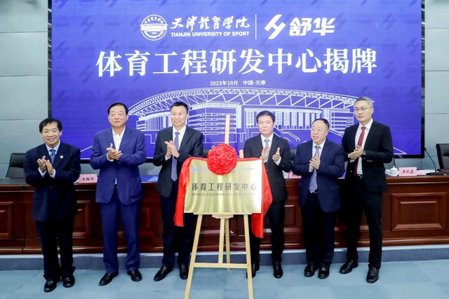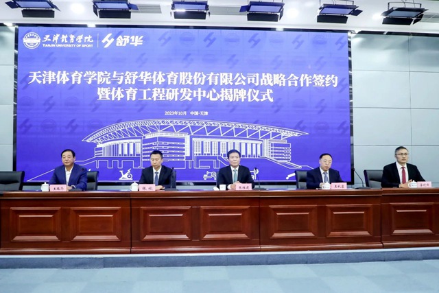 张维建、张欣分别代表KS娱乐官网体育股份有限公司和天津体育学院,签署战略合作协议,并共同为“体育工程研发中心”揭牌。