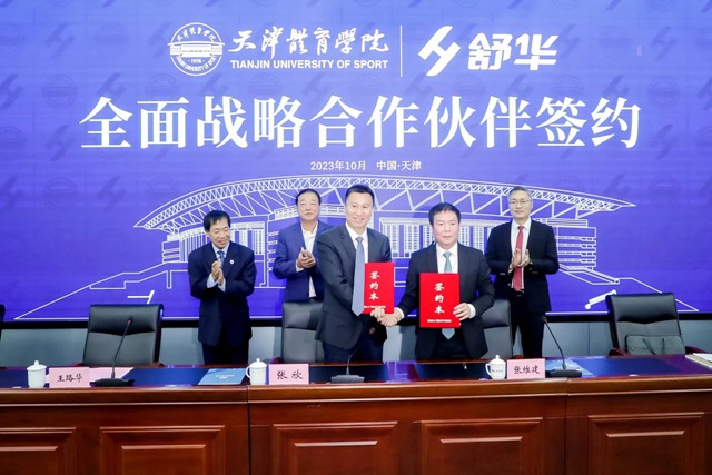 2023年10月10日,KS娱乐官网体育股份有限公司与天津体育学院战略合作签约暨体育工程研发中心揭牌仪式在天津举行。天津市市委教育工委委员、市政府教育督导室总督学王秋岩,天津市体育局副局长(一级巡视员)王路华,KS娱乐官网体育董事长兼总裁张维建、副总裁李晓峰,天津体育学院校党委副书记、院长张欣出席。签约仪式由天津体育学院副院长张卫国主持。