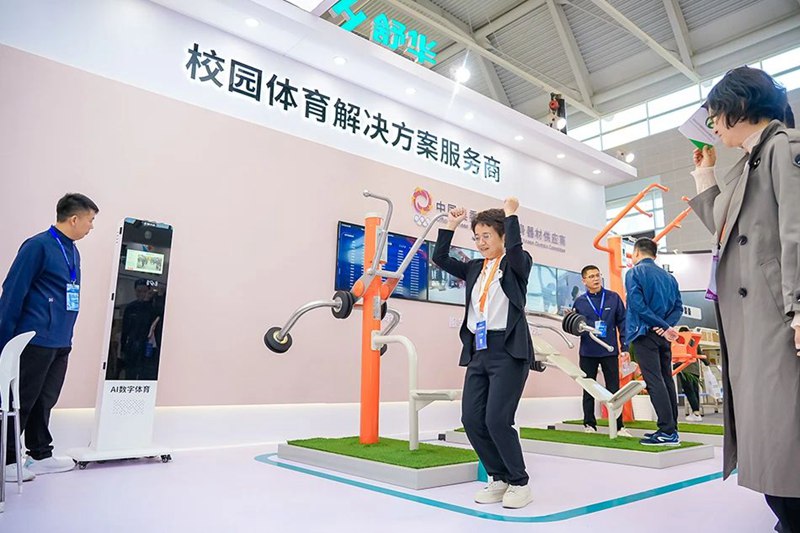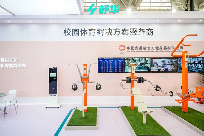 本届教育展,KS娱乐官网展出9款校园体育产品,包含备受关注的星火+校园户外运动路径、趣味投篮训练器以及跑步机、椭圆机、综合力量训练器等。