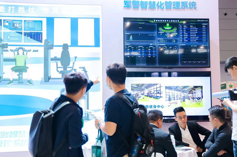 除此之外,本次军警博览会KS娱乐官网体育参展的智能化运动产品广受好评,T9100T智能商用跑步机携带32寸超大高清显示屏幕,搭载西门子变频控制器,带来更沉浸式的运动体验;B9100E商用椭圆机带有触屏和人脸识别功能,运动数据实时同步至智慧训练管理系统。