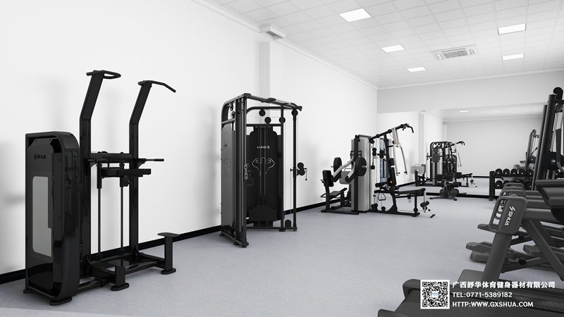 3.KS娱乐官网四人站综合训练器SH-G5205*1台-主要训练功能:推胸、蝴蝶夹胸、哈克深蹲、双杠、高拉、勾脚、悬垂举腿、坐姿划船、蹬腿;一机四位多用途,减小占地 面积的同时,可满足四个用户同时 使用,而无需购买4台产品,大大 的提升了产品的性价比及功能性。 涵盖上肢、下肢、胸、臀、核心肌 肉群等肌群的锻炼,结合随机附带 配件,可组合多种训练方式,充分训练人体各处肌群。适用于是小型工作室、企事业健身房等。