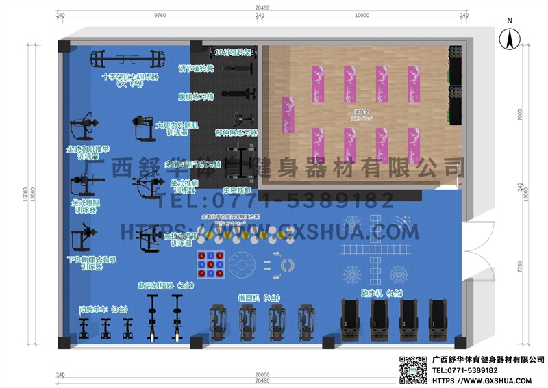 2.力量训练器械区(约70平方米)